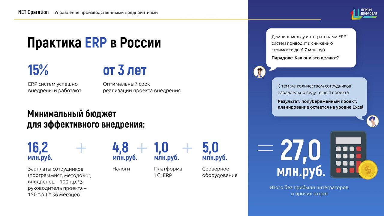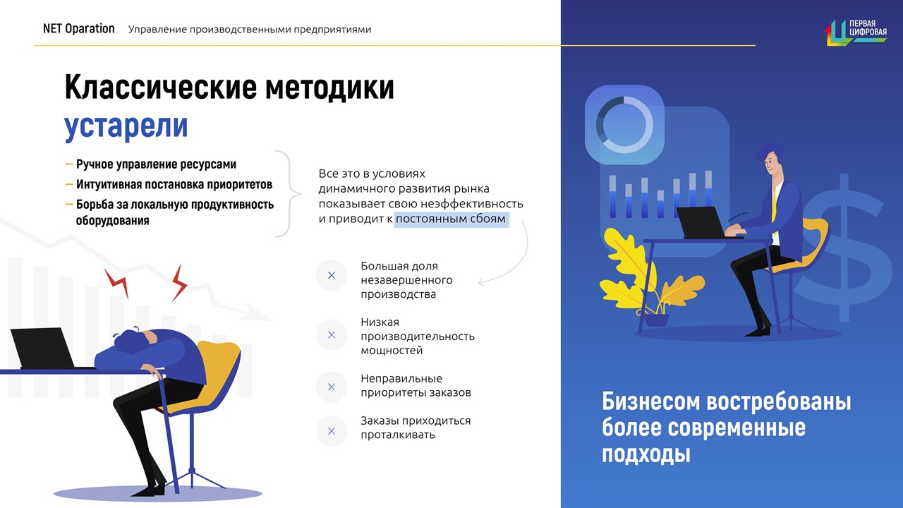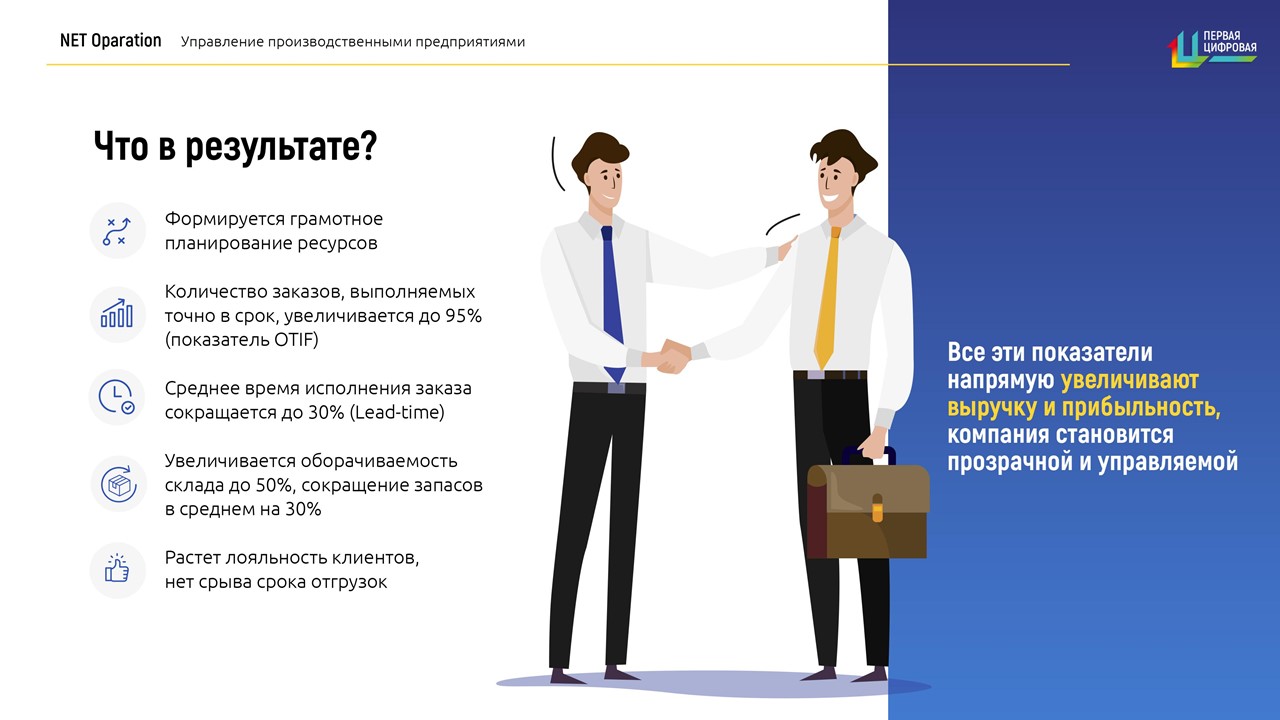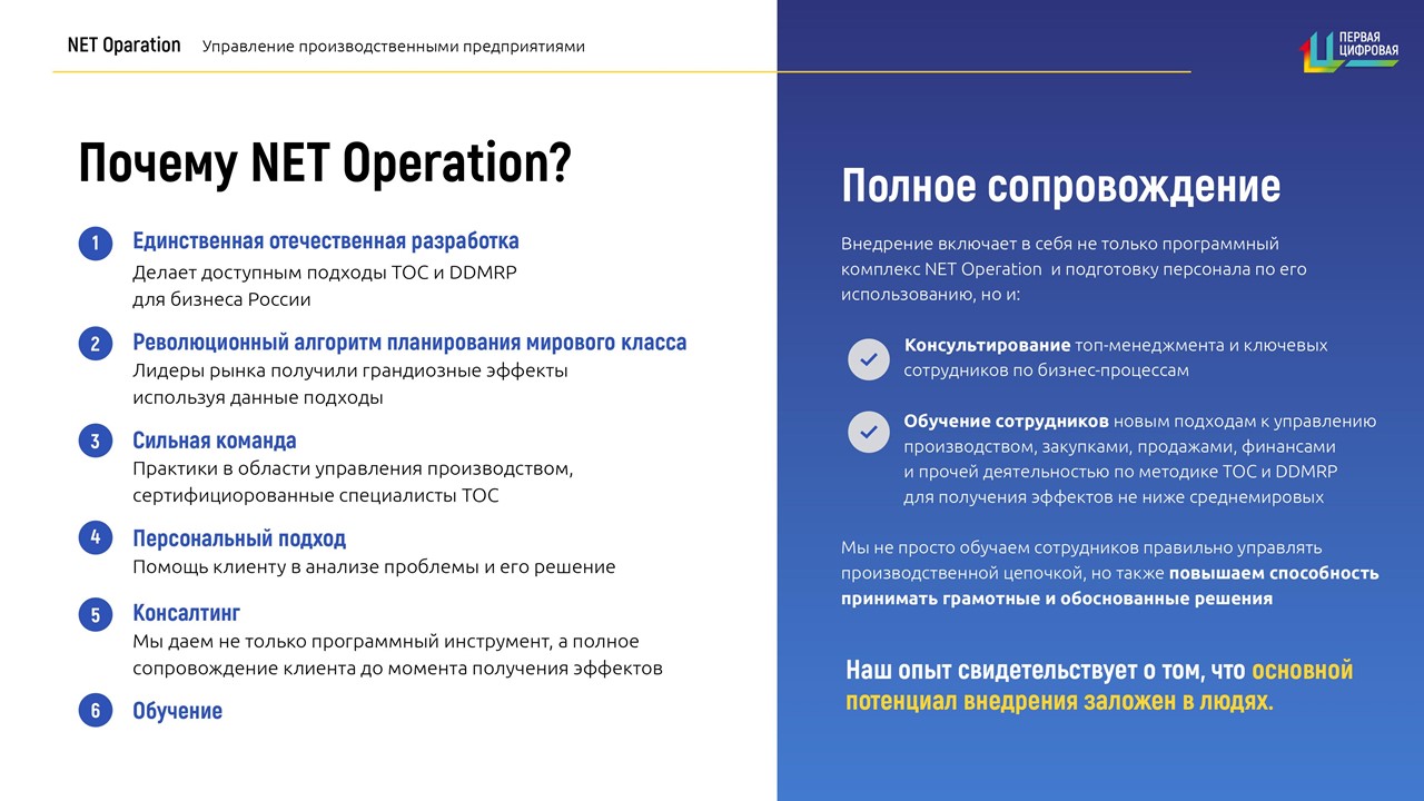 Net Operation выгодно отличается от других традиционных систем тем, что управление производством основано на своевременном удовлетворении потребностей клиентов по самому оптимальному для компании сценарию