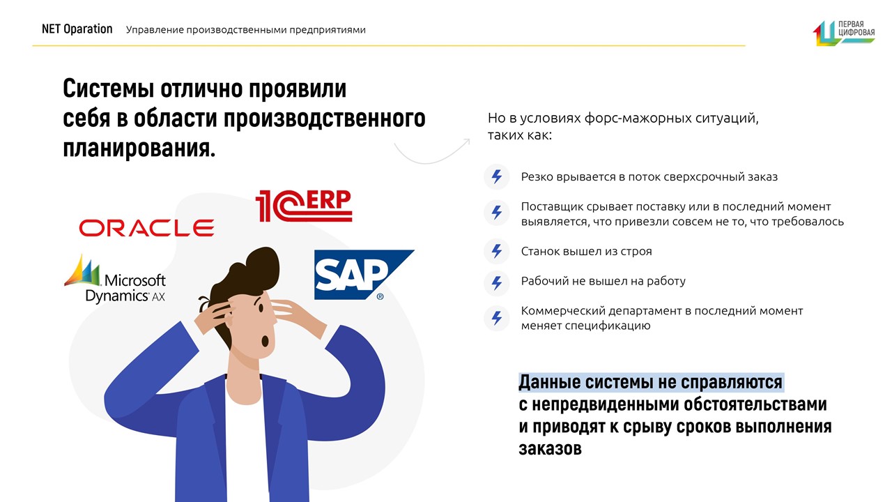 «Классические ERP системы не позволяют учитывать факторы неопределенности, которые срывают сроки производства: поломка оборудования, срыв сроков поставки материалов, прогул рабочего»